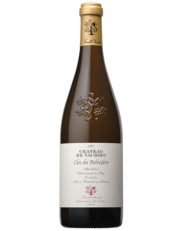 Clos du Belvedere est produit au sein du domaine du Château de Vaudieu. Parcelle unique en altitude, clôturée d'un mur anti-mistral. Argiles rouges, galets roulés et roche mère de Calcaire à silex, qui explique une telle minéralité.